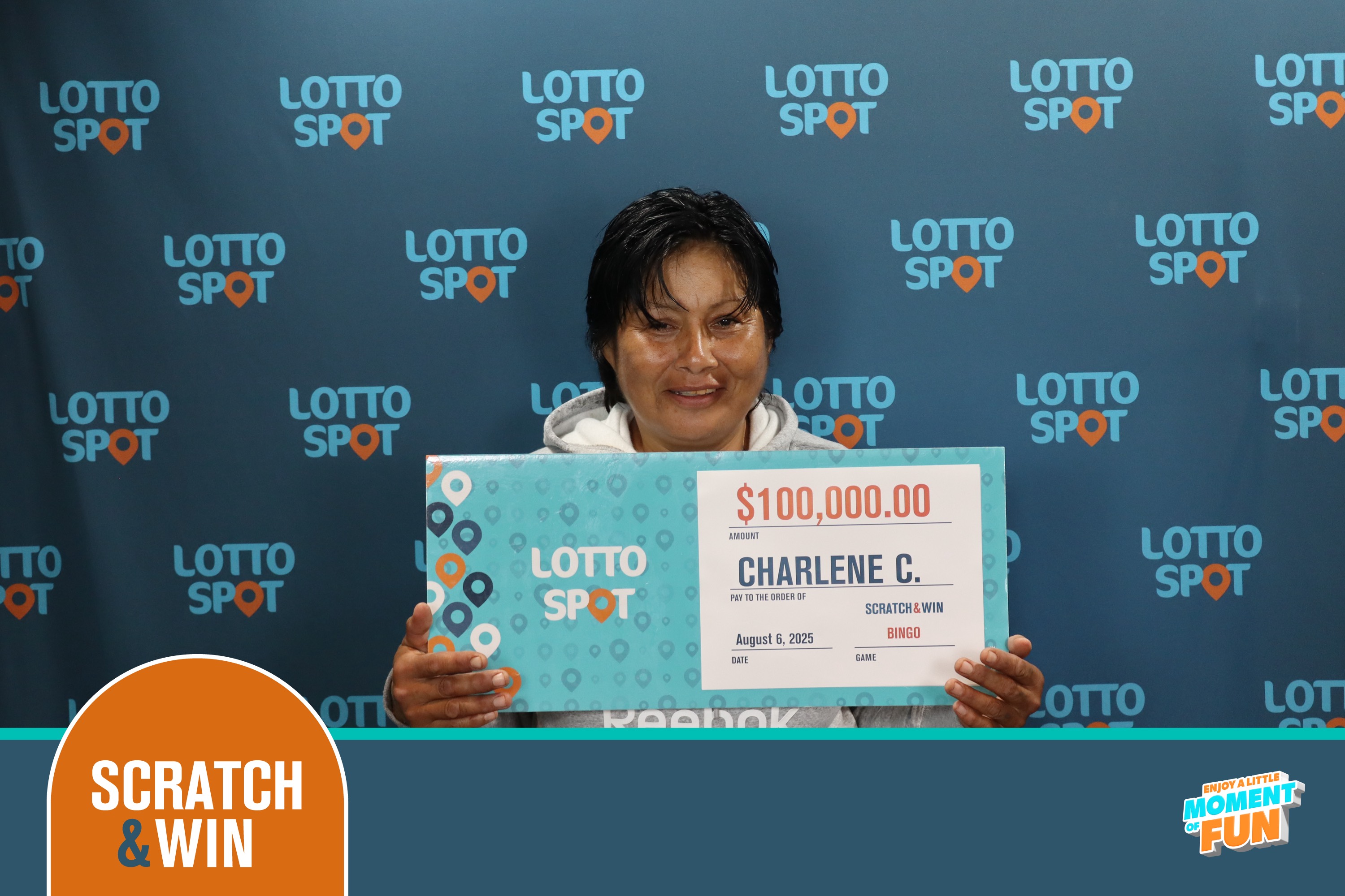 Charlene Cook won $100,000 on a BINGO Scratch & Win ticket that came as part of a $20 SUPER SCRATCH PACK.